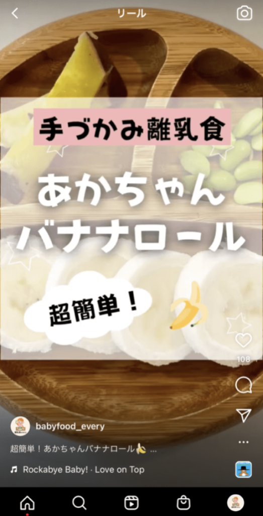 フィード投稿と同じく、サムネイルを見ただけでベネフィット(価値)がわかるようにしましょう。他にも感情を揺さぶる“パワーワード”を使用するのも有効です。例えば離乳食のリールでは「超簡単!」や「すぐできる!」がパワーワードになります。