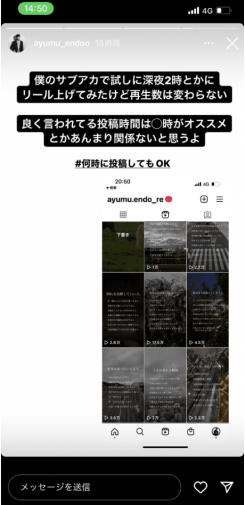【リポストで投稿されたリールの例】