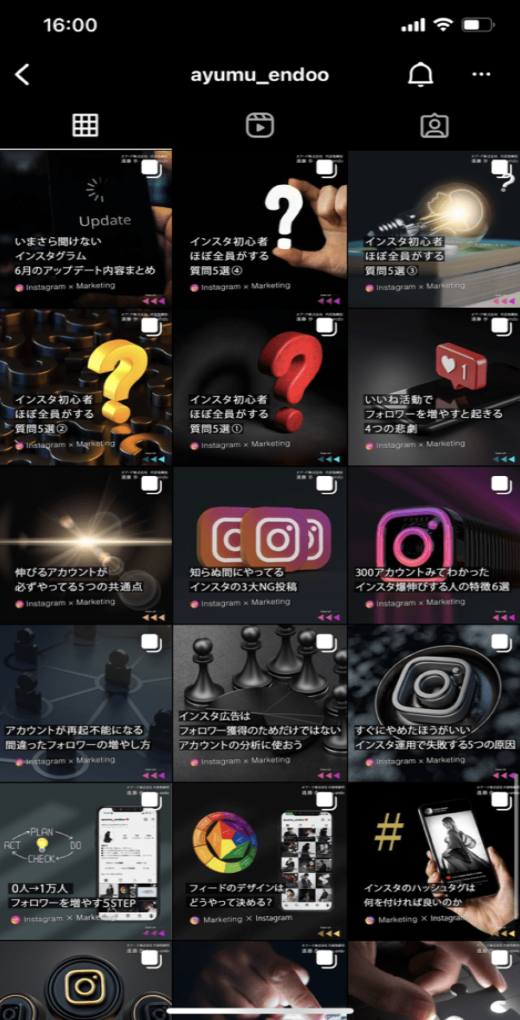 そのため、これからプロフィールを作成する段階の方はまず最低でもフィード投稿を9つ揃えましょう。既に投稿が充実している方は、デザインやタイトルのトンマナが揃っているかなど、プロフィールと合わせて世界観を作れているかを見直してみてください。