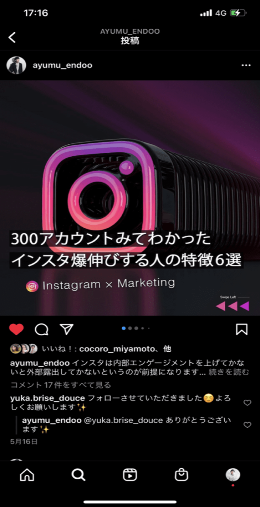 ただメッセージを送ればいいということではなく、フォローされたら感謝のDMを送ったり、他ユーザーの投稿に反応したり、インスタを楽しむ中で発生する自然なコミュニケーションが増えるのがベストです。