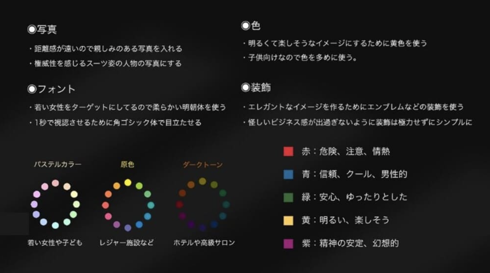 例えば、ターゲットがネガティブな状態で自分に自信がないタイプであれば、黒や赤などの強い印象になる色は避けた方がよいでしょう。