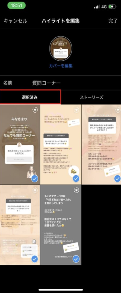 - ハイライトに含めたいストーリーズを選択