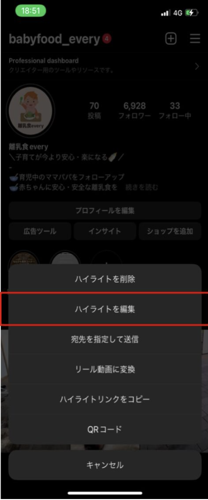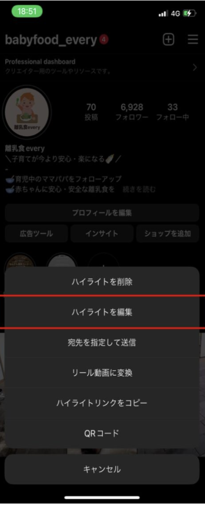 - 「ハイライトを編集」を選択