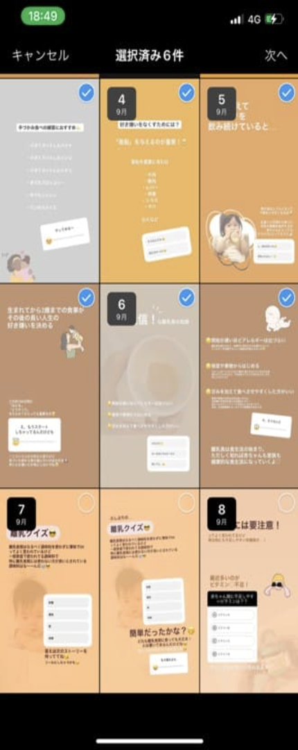 追加できるストーリーズの数に制限はないため、上限を気にせず複数選択してOKです。