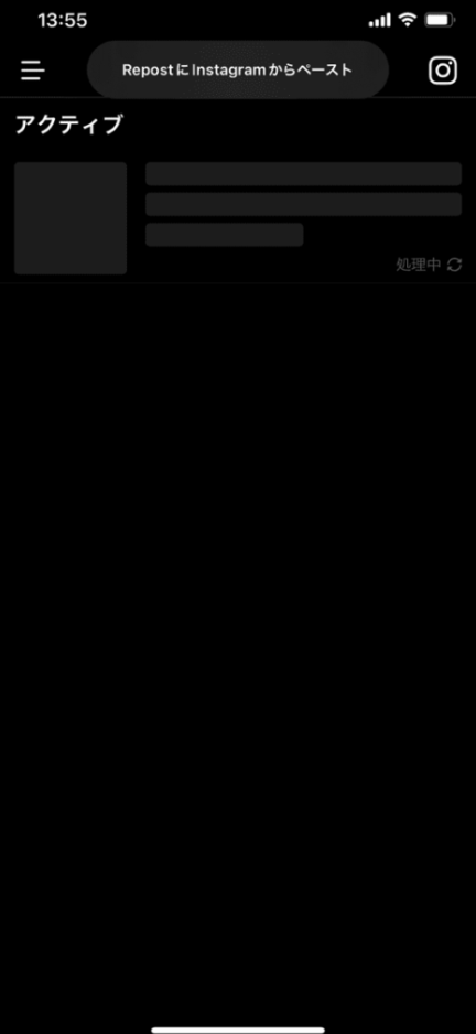 リポストアプリに戻ると、クリップボードから自動でURLを読み込んでくれるため、そのまま処理が終わるのを数秒待ちます。