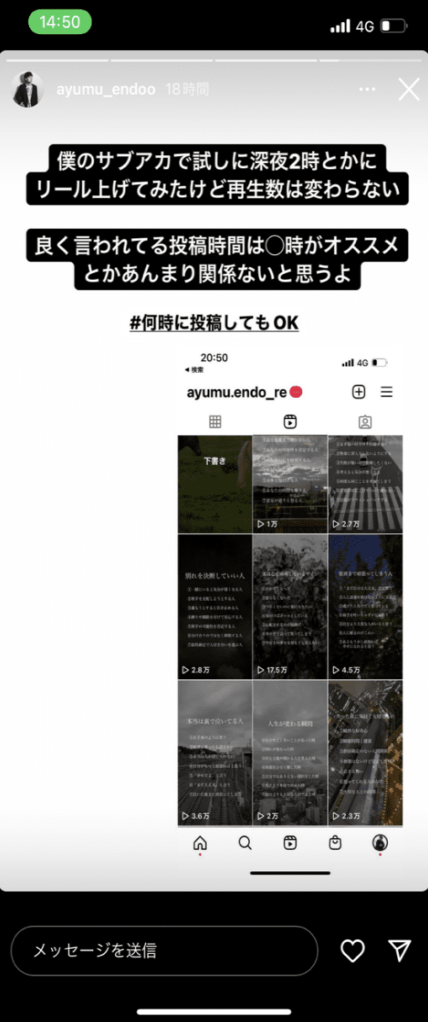 自分事:リールの投稿時間はいつがいいのか悩んでいる